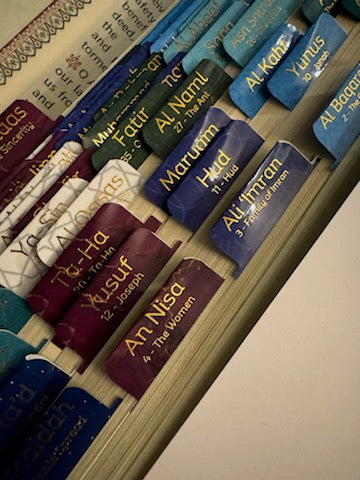 Al Bayan Quran Tabs provide a significant benefit for your study and memorization efforts. With each tab clearly marking the name and number of the Surah or Juz, navigating to specific sections becomes effortless. This streamlined organization not only saves time but also enhances your focus and retention, helping you deepen your understanding and connection with the Quran.